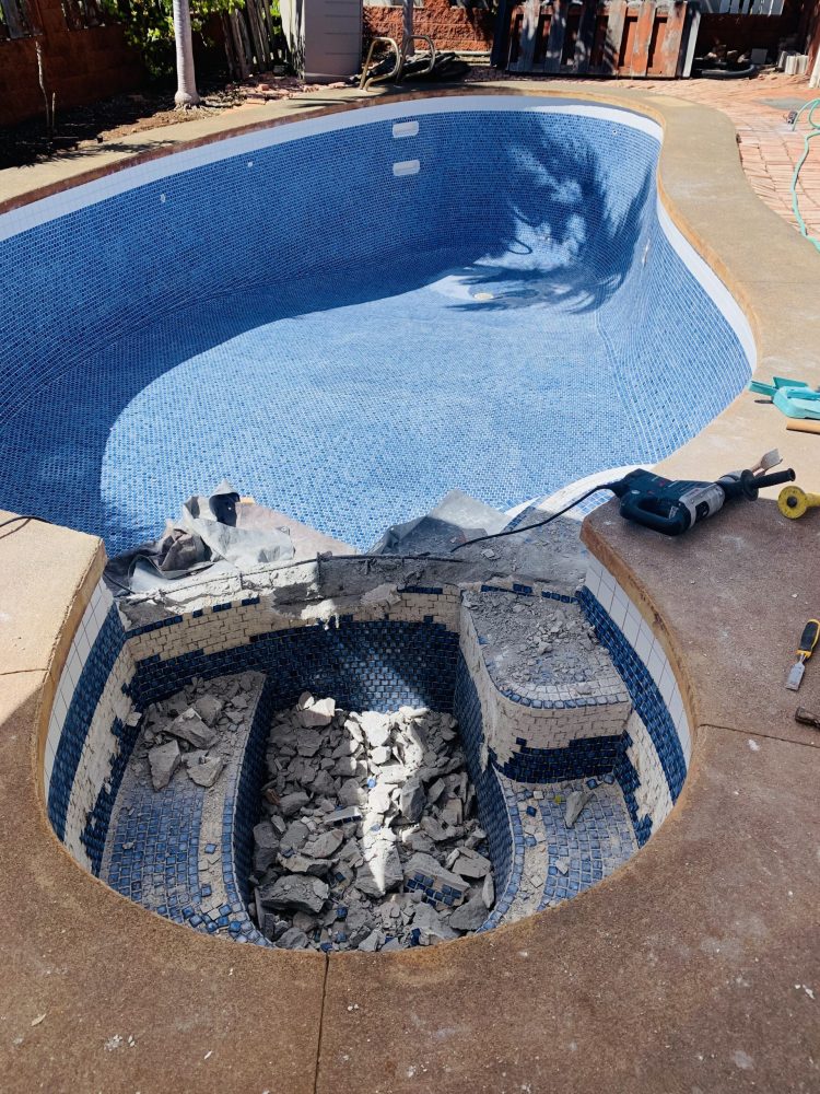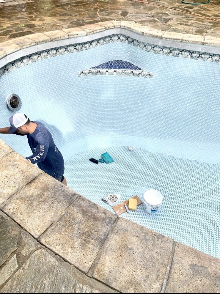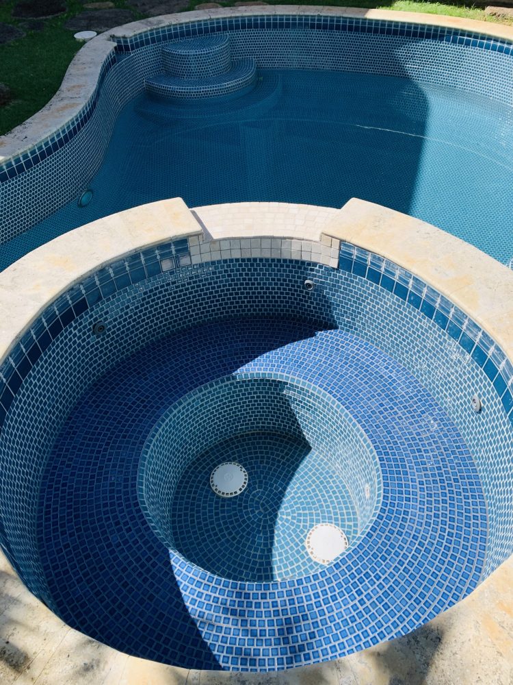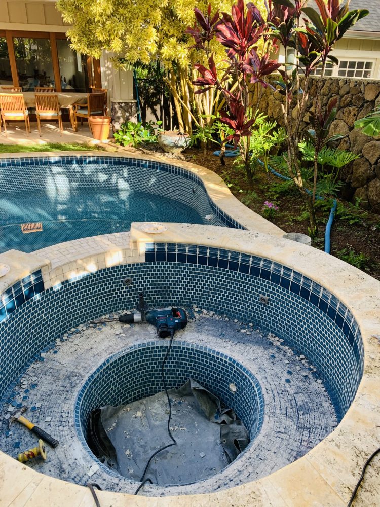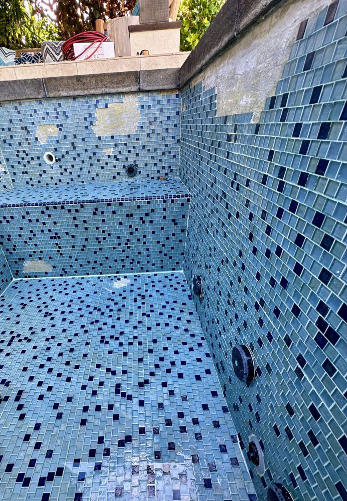 Hunakai Pool Services utilizes a system for removing calcium deposits quickly. Tiny pellets are shot against the deposits under pressure, eliminating the calcium without harming the delicate tiles. The calcium debris and small pellets settle at the bottom of the pool and are removed by our vacuum system. We also specialize in repairing tile by removing and replacing damaged tiles and replace the grout to restore your pool’s look.
